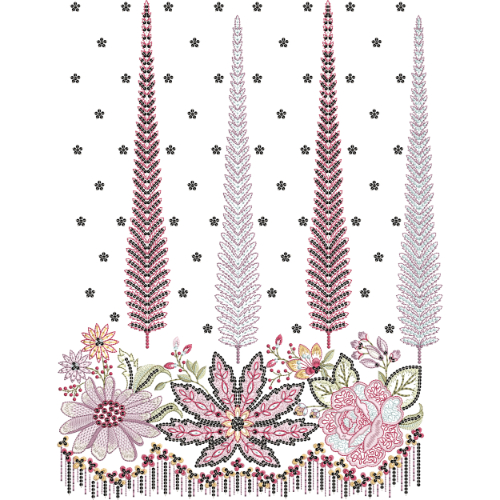 The embroidery-style stitching highlights refined craftsmanship, making this design suitable for sophisticated and feminine textile applications. This artwork is ideal for kurti and gown panels, dupatta fronts, saree pallus, abaya and kaftan designs, scarves, and premium home décor textiles. Created in high-resolution JPG format at 300 DPI, it ensures crisp stitch clarity, soft color harmony, and professional-quality results for both digital and printed textile production.
