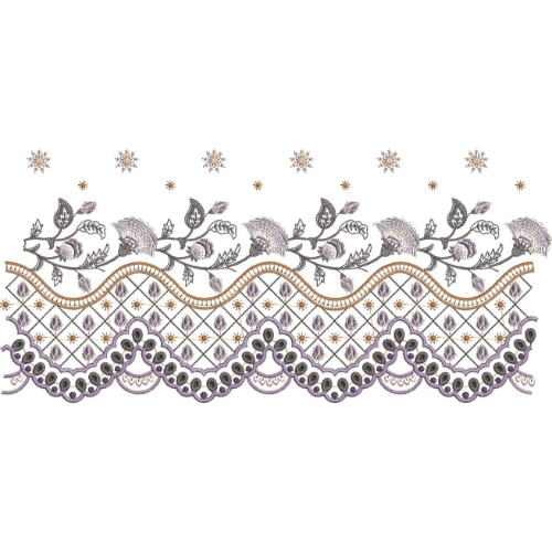 Get the Easy Floral Lace Embroidery Design for an Embroidery Machine. You can apply lace machine-embroidered designs to many types of clothing, including sarees, dupattas, kurtis, t-shirts, abayas, and caftans. We frequently offer new, reasonably priced lace embroidery designs on our website. Dresses with embroidery patterns are quite attractive. For greater quality machine embroidered lace designs and embroidery lace designs, you can peruse our silver embroidery design website.