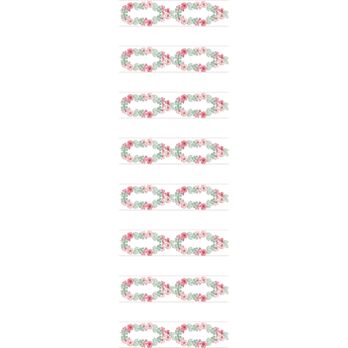 This elegant lace embroidery design features a refined neckline composition presented in a repeated vertical sequence. Each unit is structured in an oval shape, formed by delicate floral vines that create a smooth and symmetrical frame.