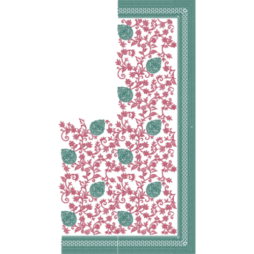 This embroidery design is ideal for sarees and ethnic garments, offering a beautiful balance of intricate floral detailing, statement paisley accents, and structured border work for an elegant and modern aesthetic.