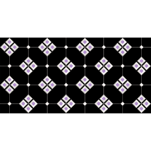 Geometric Embroidered Diamond Pattern with Floral Accents on Black Background