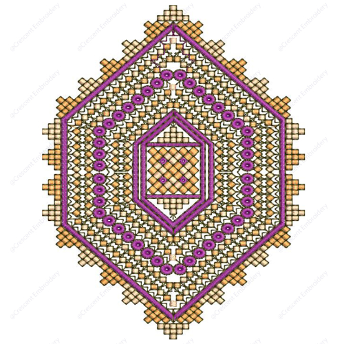 Geometric Hexagon Cushion Embroidery Design with Layered Mosaic Detailing