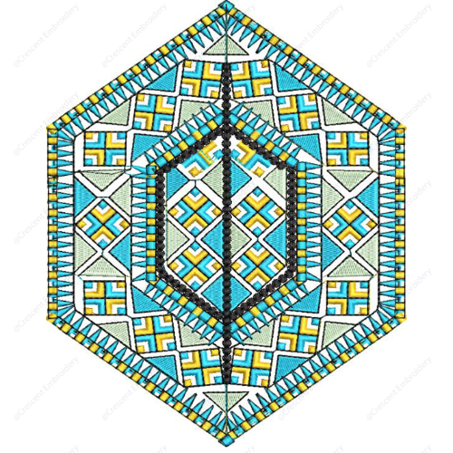 Geometric Hexagon Cushion Embroidery Design with Multicolor Mosaic Pattern