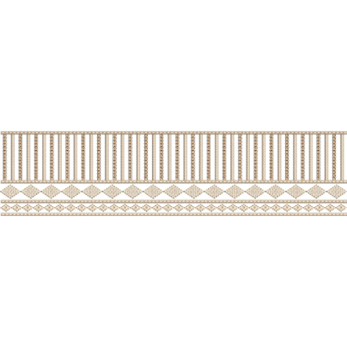 The combination of vertical bead-like embroidery columns, geometric diamond motifs, and finely stitched horizontal bands creates a refined lace embroidery border with a strong architectural character. The simple yet elegant geometric arrangement makes this design suitable for decorative garment borders or textile embellishments where a clean and structured lace pattern is desired.
