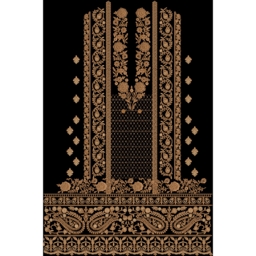 Rendered as a high-quality 300 DPI illustration, this artwork is suitable for professional embroidery digitizing, textile printing, and fashion design use. Its luxurious golden palette and traditional aesthetic make it ideal for bridal wear, formal ethnic outfits, festive collections, and heritage-inspired garments.
