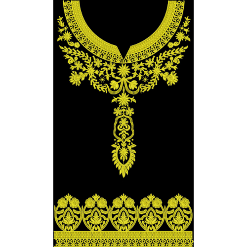 Golden Floral Neckline Embroidery Design with Decorative Bottom Border
