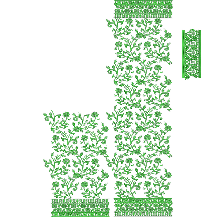 The single-tone color approach highlights the intricate detailing and stitch-like texture of the motifs, giving the design a polished and cohesive appearance. This embroidery design is ideal for elegant sarees, casual traditional wear, and lightweight festive outfits, offering a perfect blend of simplicity, clarity, and timeless style.