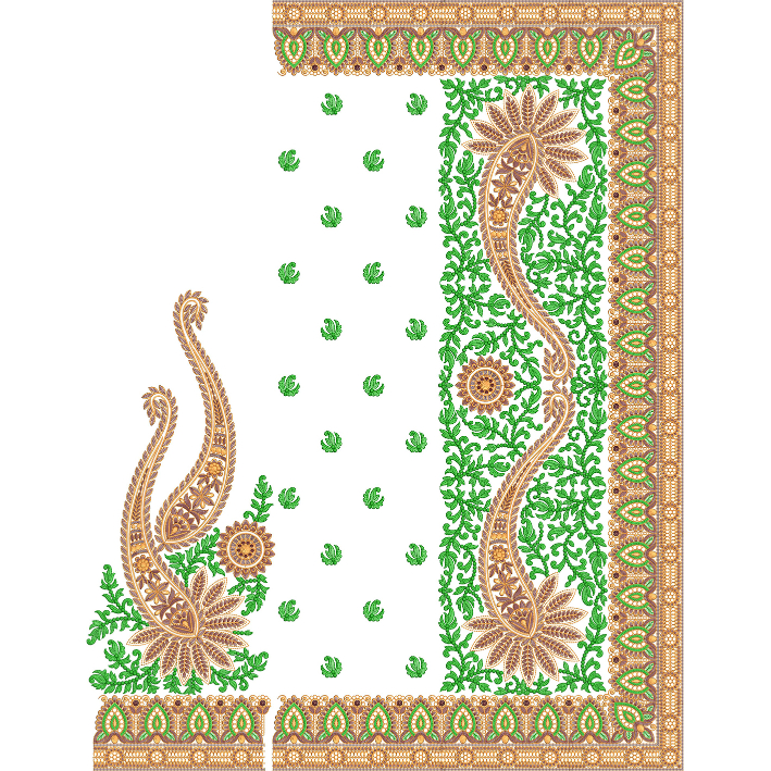 Grand Paisley Floral Saree Embroidery Design with Rich Green Vine Fill and Ornamental Border