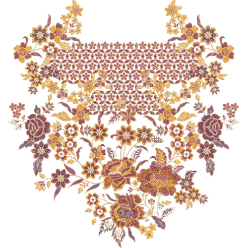 Fine stitch detailing and precise pattern alignment ensure high-quality machine embroidery output with a dimensional and polished finish. This neckline embroidery design is ideal for kurtis, kameez, long dresses, and traditional ethnic outfits. It pairs beautifully with fabrics such as lawn, cotton, silk, chiffon, and linen, making it suitable for festive wear, boutique fashion, wedding collections, and designer garments. The fusion of dense floral detailing and traditional ornamental styling makes this neckline a timeless and premium choice for sophisticated embroidery design.