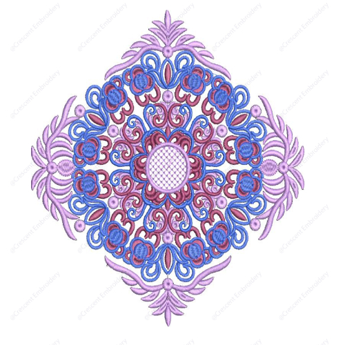 Intricate Multicolor Floral Mandala Cushion Embroidery Design with Ornamental Symmetry