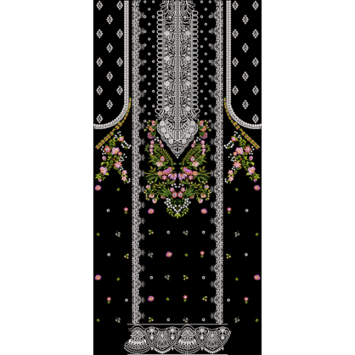 This front panel design is ideal for use on kurtis, long shirts, frocks, anarkali dresses, formal ethnic wear, and festive outfits. It is also suitable for digital textile printing, embroidery reference designs, lace and cutwork inspiration, and surface pattern projects. The overall design reflects sophistication, tradition, and refined craftsmanship, making it a perfect choice for premium textile and fashion collections.