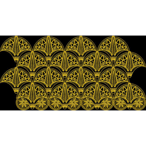 An elegant Art Deco–inspired fan-shaped border design in rich gold tones on a black background, ideal for luxury textile borders and statement fashion fabrics.