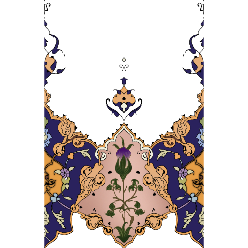 This textile print showcases an exquisite ornamental panel composition inspired by Persian and classical decorative art. The design is vertically oriented, with a symmetrical layout that emphasizes balance, elegance, and refined craftsmanship.