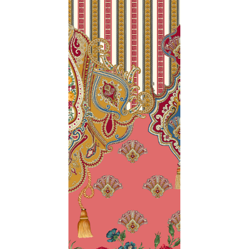 Luxury Paisley Panel Border Textile Print with Ornamental Details in Coral and Gold