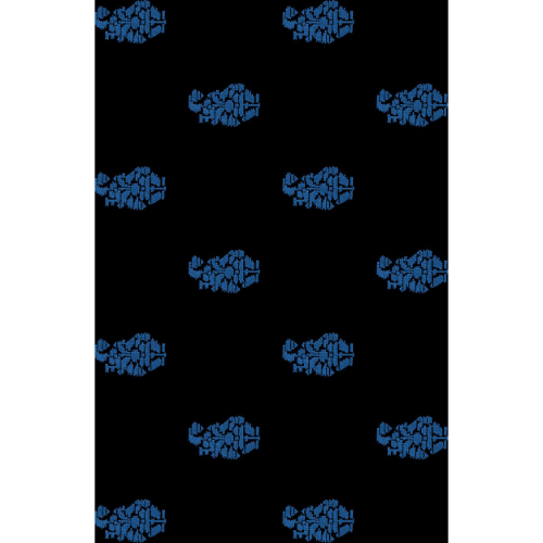 A subtle all-over textile print featuring small repeating floral motifs in deep blue tones arranged on a black background, ideal for understated, modern, and elegant fabric applications.