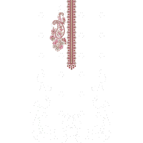 This neckline embroidery design features a minimalist and elegant composition centered around a narrow vertical panel with fine decorative detailing. The central strip is defined by closely spaced linear patterns and small ornamental accents, creating a clean and structured appearance. The simplicity of this vertical element enhances the overall sophistication of the design.