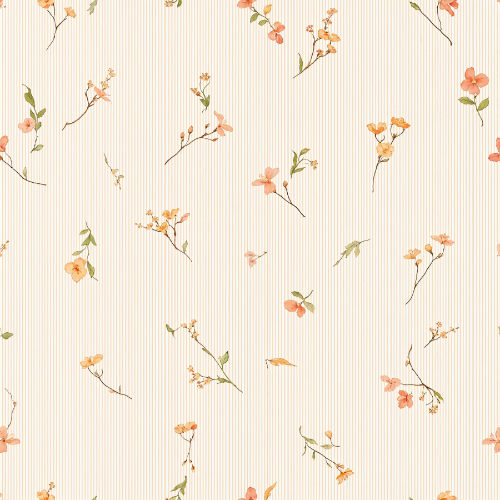 minimal wildflower pattern, peach botanical seamless pattern, delicate floral repeat design, watercolor wildflower textile print, cottage garden flower pattern, striped floral seamless background, botanical surface pattern design, soft peach flower fabric pattern, vintage floral wallpaper design, meadow flower repeat pattern