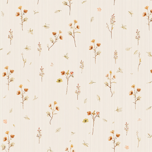 With its minimal botanical arrangement and warm vintage palette, this pattern captures the quiet beauty of delicate wildflowers in a timeless meadow-inspired design.