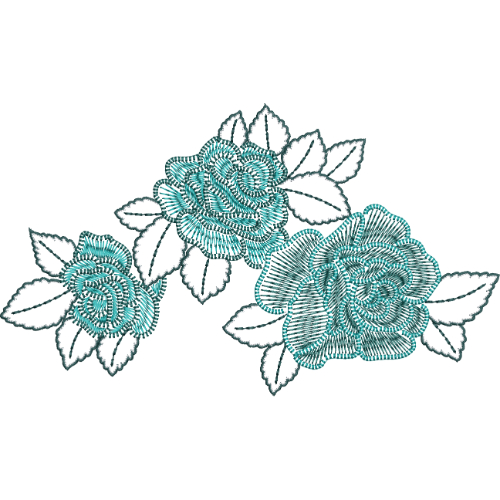 Minimalist Rose Floral Embroidery Design with Line Fill Petals and Leaf Outline Detailing