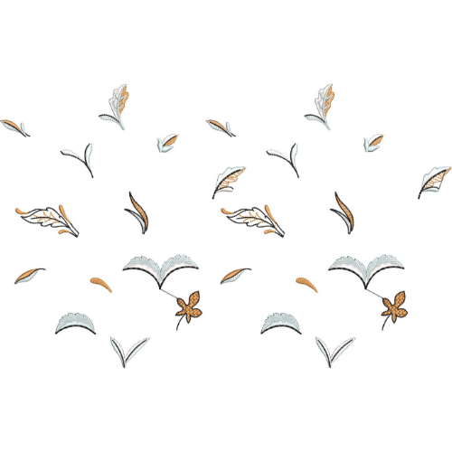 This elegant embroidery design features a light and airy composition of scattered floral and leaf elements arranged in a balanced, spaced layout. The design focuses on simplicity, with small individual motifs placed thoughtfully to create a soft and open visual effect.