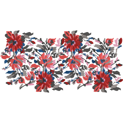 Modern Floral Embroidery Border Design with Bold Red Blossoms