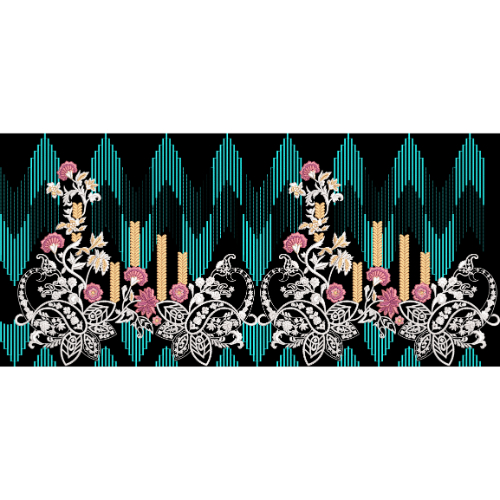 Modern Floral Embroidery Border with Geometric Wave Pattern