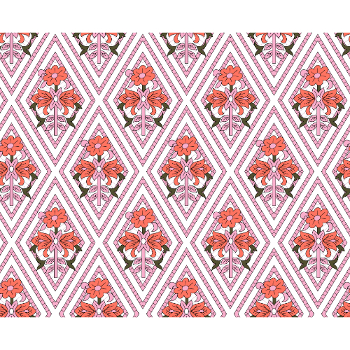 The repeating arrangement creates a seamless pattern suitable for full fabric coverage. The harmonious blend of geometry and floral ornamentation adds rhythm and visual interest without overwhelming the design.