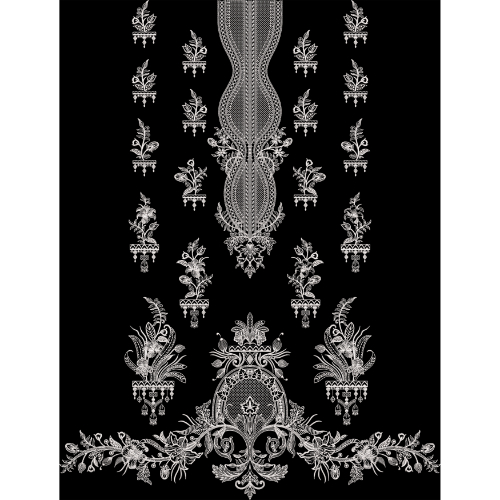 This textile print is ideal for formal wear, kurtis, dresses, abayas, kaftans, embroidered-style garments, and decorative fashion panels. The high-resolution detailing ensures suitability for premium digital textile printing and high-quality fabric applications.
