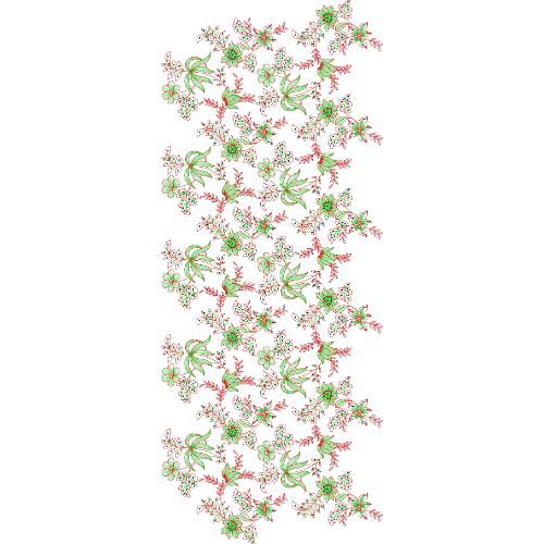 This all-over jaal embroidery design reflects a graceful ornamental style that blends vibrant floral detailing with fluid composition. The harmonious repetition and dynamic movement make it ideal for elegant garment applications requiring refined full-surface embroidered artistry with a fresh and decorative appeal.