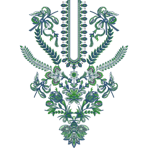 Are you still searching for embroidery for a Neck Embroidery Design? The specific machine-embroidered design, featuring lovely figures and shapes in this trendy embroidery neck set, was created especially for you by our talented embroidery designer team from Pakistan. For higher-quality neck machine embroidery patterns, browse our silver embroidery design website.