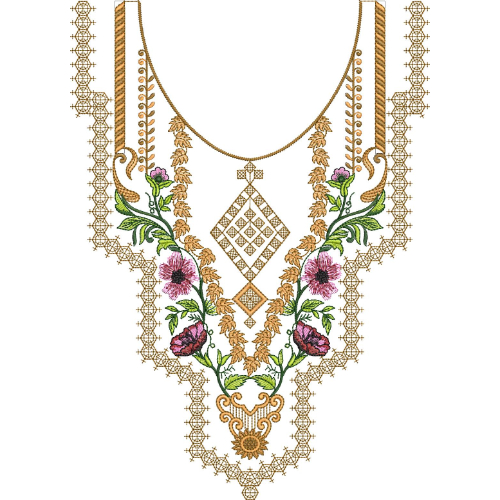 Are you still searching for Neck Embroidery Design? The specific machine-embroidered design, featuring lovely figures and shapes in this trendy embroidery neck set, was created especially for you by our talented embroidery designer team from Pakistan. For higher-quality neck machine embroidery patterns, browse our silver embroidery design website.
