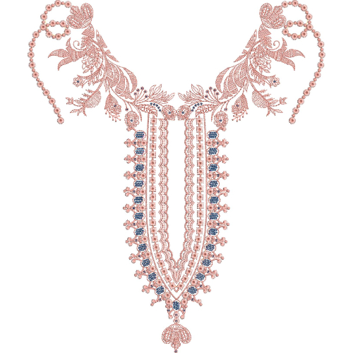 Are you still searching for embroidery for a Neck Embroidery Design? The specific machine-embroidered design, featuring lovely figures and shapes in this trendy embroidery neck set, was created especially for you by our talented embroidery designer team from Pakistan. For higher-quality neck machine embroidery patterns, browse our silver embroidery design website.