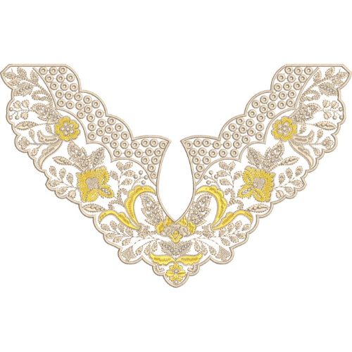 Are you still searching for embroidery for a Neck Embroidery Design? The specific machine-embroidered design, featuring lovely figures and shapes in this trendy embroidery neck set, was created especially for you by our talented embroidery designer team from Pakistan. For higher-quality neck machine embroidery patterns, browse our silver embroidery design website.