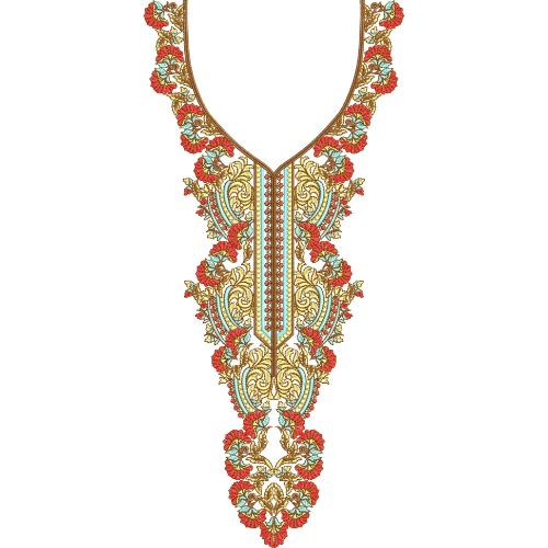 Kurtis, tunics, Pakistani suits, and dresses can all be embroidered with this embroidery neck pattern. This embroidery design can be downloaded right now.
