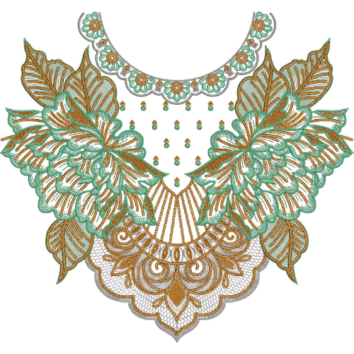 Are you still searching for embroidery for a Neck Gala Embroidery Design? The specific machine-embroidered design, featuring lovely figures and shapes in this trendy embroidery neck set, was created especially for you by our talented embroidery designer team from Pakistan. For higher-quality neck machine embroidery patterns, browse our silver embroidery design website.