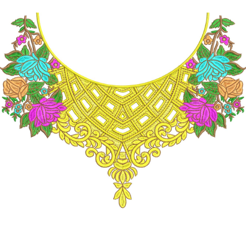 Kurtis, tunics, Pakistani suits, and dresses can all be embroidered with this embroidery neck pattern. This embroidery design can be downloaded right now.
