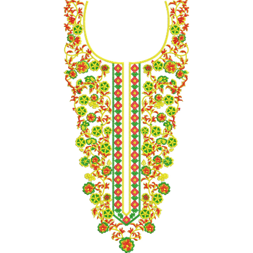Kurtis, tunics, Pakistani suits, and dresses can all be embroidered with this embroidery neck pattern. This embroidery design can be downloaded right now.
