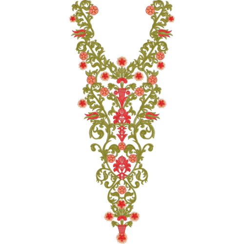 Kurtis, tunics, Pakistani suits, and dresses can all be embroidered with this embroidery neck pattern. This embroidery design can be downloaded right now.
