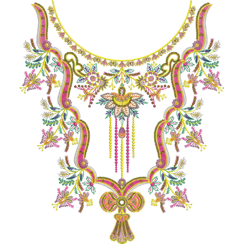 Kurtis, tunics, Pakistani suits, and dresses can all be embroidered with this embroidery neck pattern. This embroidery design can be downloaded right now.
