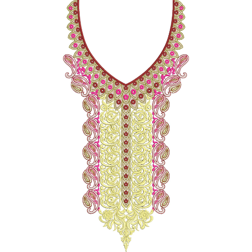 Kurtis, tunics, Pakistani suits, and dresses can all be embroidered with this embroidery neck pattern. This embroidery design can be downloaded right now.