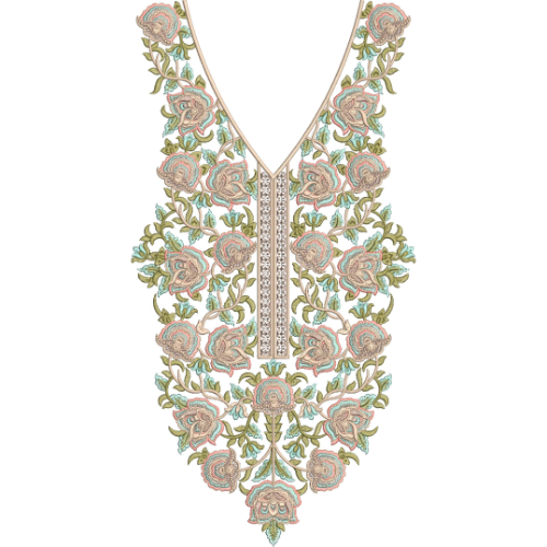 Kurtis, tunics, Pakistani suits, and dresses can all be embroidered with this embroidery neck pattern. This embroidery design can be downloaded right now.
