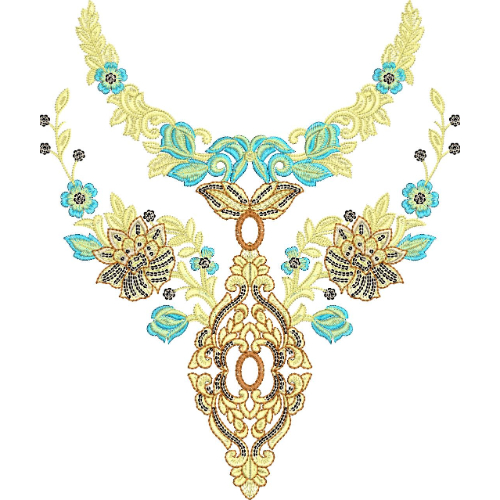 Are you still searching for embroidery for a Neckline Embroidery Design? The specific machine-embroidered design, featuring lovely figures and shapes in this trendy embroidery neck set, was created especially for you by our talented embroidery designer team from Pakistan. For higher-quality neck machine embroidery patterns, browse our silver embroidery design website.