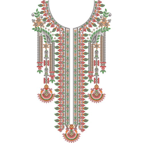Are you still searching for embroidery for a Neckline Embroidery Design? The specific machine-embroidered design, featuring lovely figures and shapes in this trendy embroidery neck set, was created especially for you by our talented embroidery designer team from Pakistan. For higher-quality neck machine embroidery patterns, browse our silver embroidery design website.