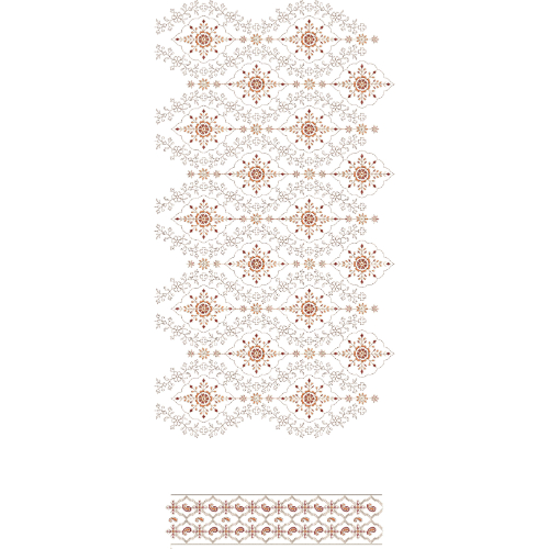This all-over jaal embroidery design reflects a timeless ornamental aesthetic that blends geometric precision with delicate floral artistry. The seamless repetition and coordinated border detailing make it ideal for sophisticated garment surfaces requiring full-coverage embroidery with a refined and elegant appeal.