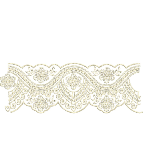 Ornamental Floral Lace Embroidery Border with Wave Pattern and Fan Motif Detailing