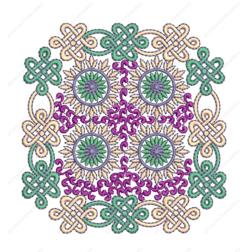 Ornamental Floral Medallion Cushion Embroidery Design with Interlaced Knot Detailing