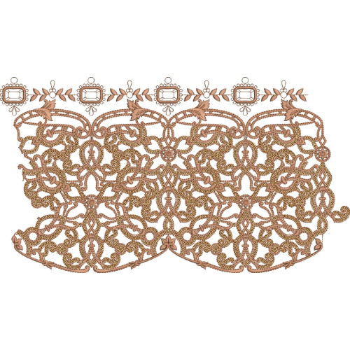 Ornamental Lace Embroidery Border with Interwoven Scrollwork and Decorative Top Band