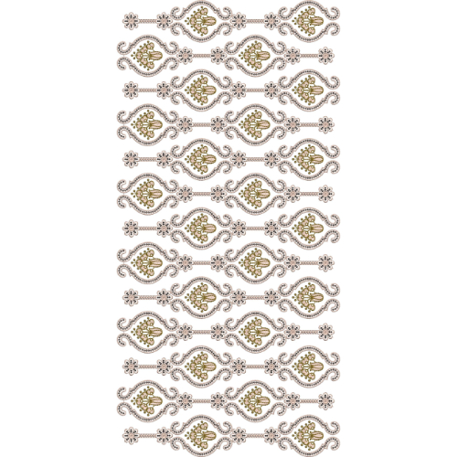 The curved extensions and fine detailing introduce softness to the composition while preserving a well-organized repeat pattern. The consistent placement of motifs and connecting elements ensures a fluid transition from one repeat to the next, making the design visually continuous and cohesive. This embroidery style reflects a classic ornamental aesthetic with intricate detailing, creating an elegant all-over jaal suitable for sophisticated and decorative embroidery layouts.