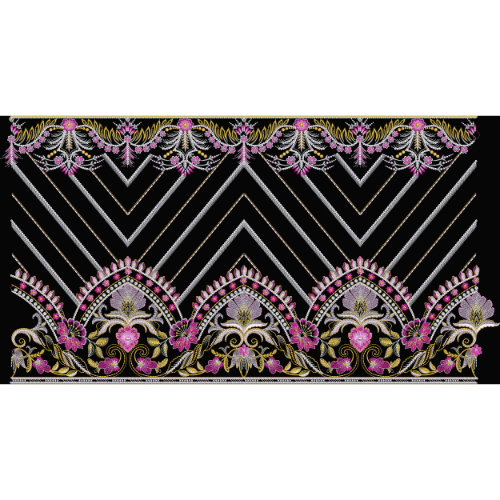 This embroidery-inspired border textile print is ideal for women’s ethnic and festive wear such as saree borders, lehenga hems, dupattas, dresses, and statement garment trims. The high-resolution quality ensures crisp detailing, smooth repetition, and excellent print clarity on fabric, making it perfect for professional textile printing and fashion design applications.