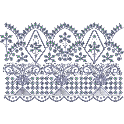 With precise alignment, smooth transitions between curves and angles, and professional-quality stitch control, this lace embroidery border design is ideal for dupatta trims, saree borders, sleeve hems, kameez panels, bridal garments, festive wear, and formal attire where intricate floral and scroll lace detailing is desired.